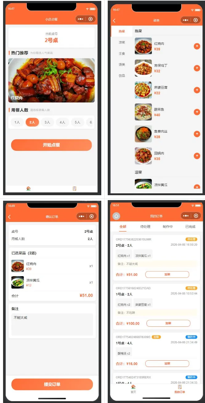 :下单时可填写备注(口味偏好、忌口等) - 追加点餐