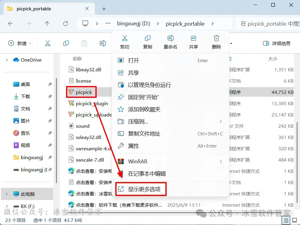 4.鼠标右击【picpick_portable】选择【显示更多选项】。