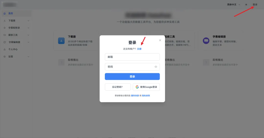 打开后点击右上角简单用邮箱注册个账号,登上去