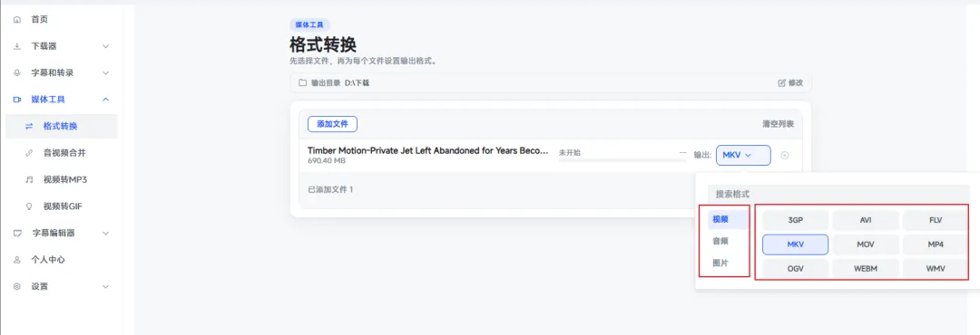 2. 视频格式转换有时候你从某平台下出来的视频,放到别的设备上就不兼容了,车机、电视、投影,挑格式挑得很“精”,DT 自带一个转码工具,支持常见的视频格式互转。