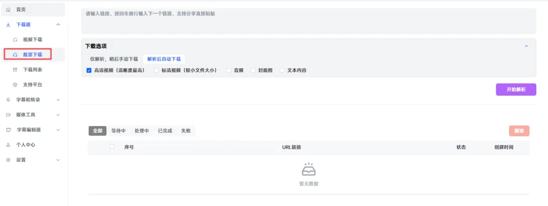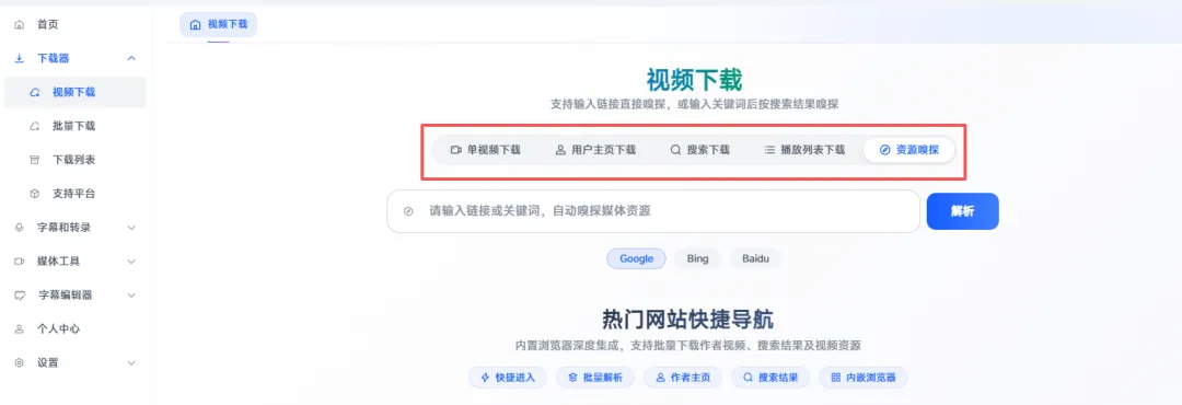常用的:β站、某音、某手、某书 国外那几家:油管、TK、Ins、脸熟、再加上新片场这类偏专业一点的 还有不少我平时不怎么上的站,偶尔试了一下,也能解析。