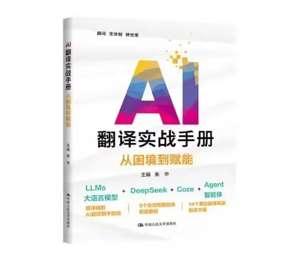 为了更好地将会员知识、读书会技巧落地,我们特别赠送正版实体书,书籍围绕AI在翻译实践、学习、教学与科研中的应用,系统讲解如何利用大模型提升效率,并创新引入Coze智能体开发平台,指导读者构建文本特征分析智能体、术语抽取智能体、译前编辑智能体等专属AI助手,为翻译与教学开辟全新路径。