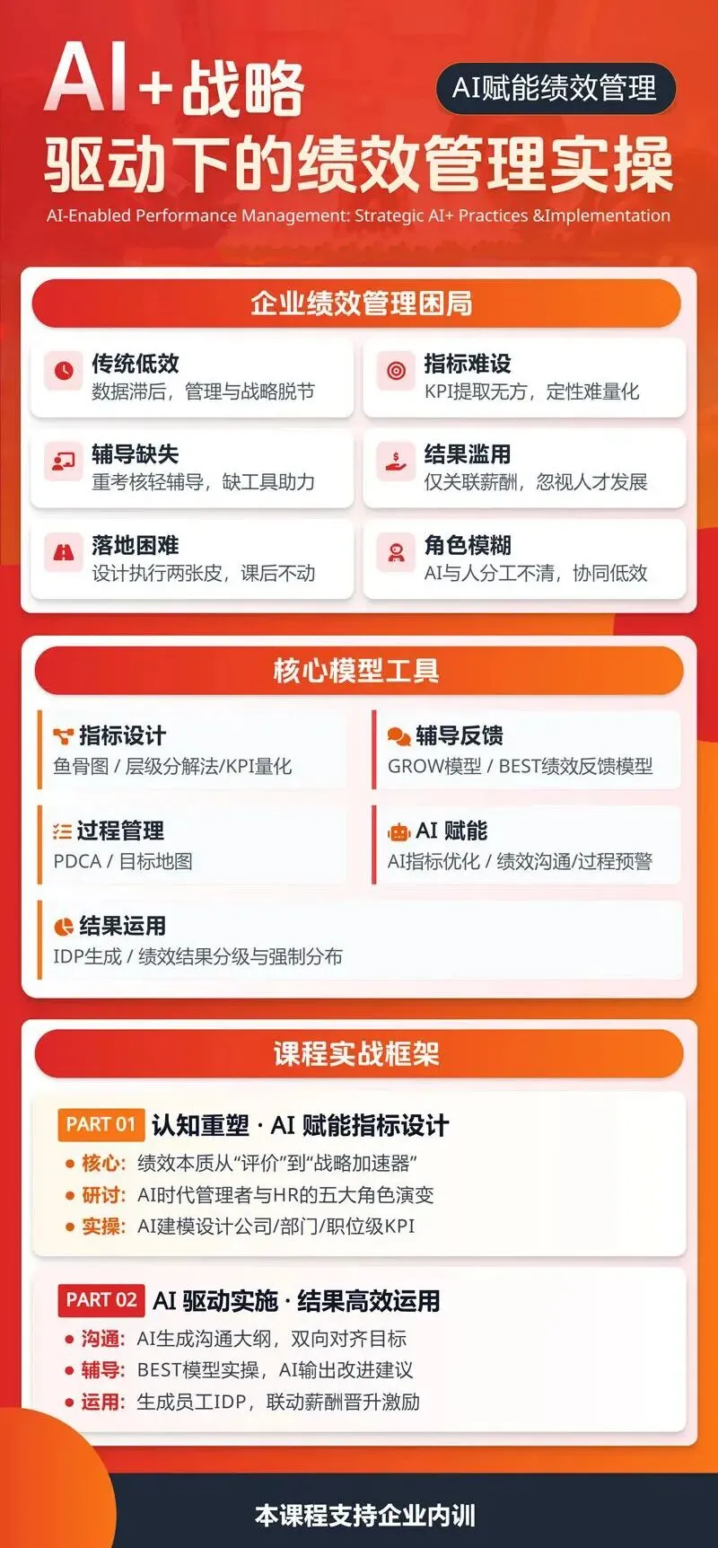 我们联合专业讲师,打造了【AI赋能绩效管理:AI+战略驱动下的绩效管理实操】课程。