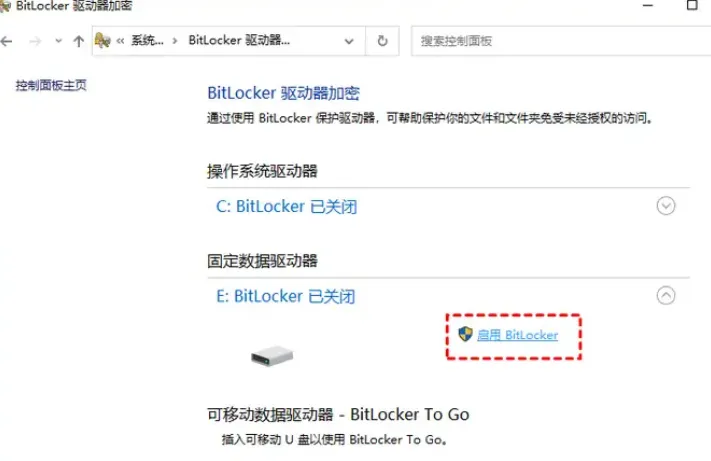 注意:BitLocker仅限Windows专业版、企业版或教育版使用,家庭版没有这个功能。方法二:设备加密(部分家庭版用户可用)