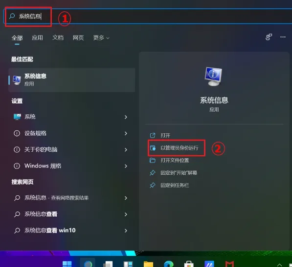 如果你的电脑是较新的型号,可能支持“设备加密”功能,操作更简单。- 在任务栏搜索“系统信息”,右键选择“以管理员身份运行”