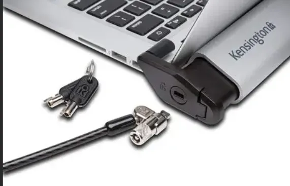 大多数笔记本电脑侧面或后面都有一个小方孔,叫Kensington安全锁孔,这是专门用来锁电脑的。- 在网上搜“笔记本防盗锁”,几十块钱买一根(肯辛通Kensington是主流品牌)