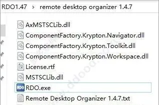 1、下载解压,得到rdo远程桌面管理工具,双击“RDO.exe”打开软件;