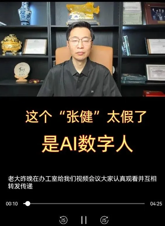 零计划视频中的“张健”是AI数字人,这样子完全变样了,一点都不像真正的“张健”!
