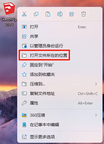 11.右键桌面【SketchUp 2019】图标,选择【打开文件所在位置】