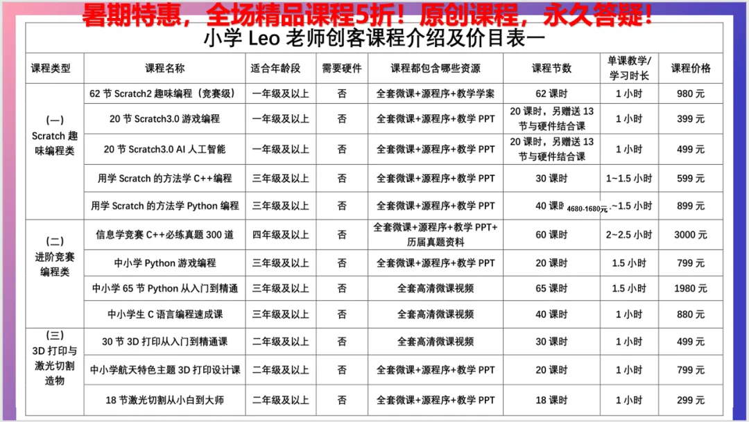 以上课程适合:想开设相关课程的在校教师、想在家自学课程的中小学生、校外培训机构教师等;