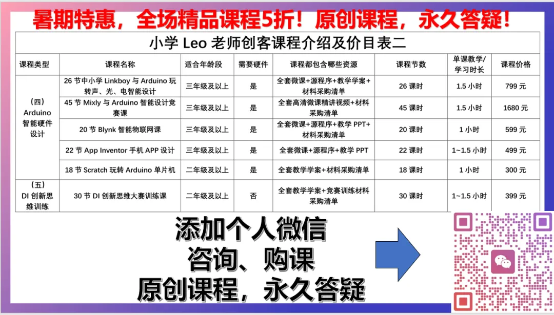 新课推荐,限时特价!《26节课用Linkboy玩转Arduino声、光、电》