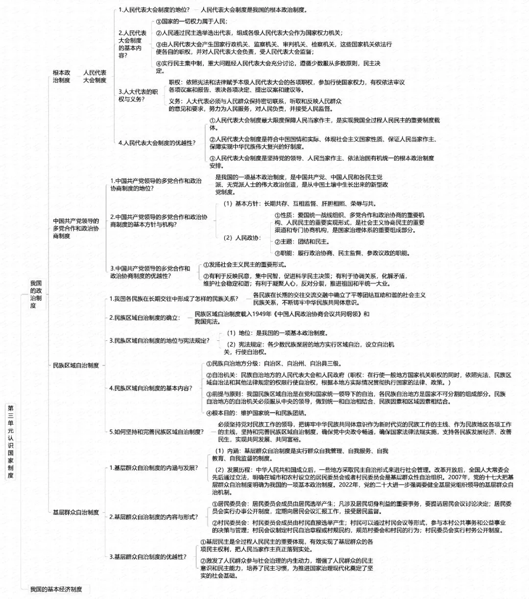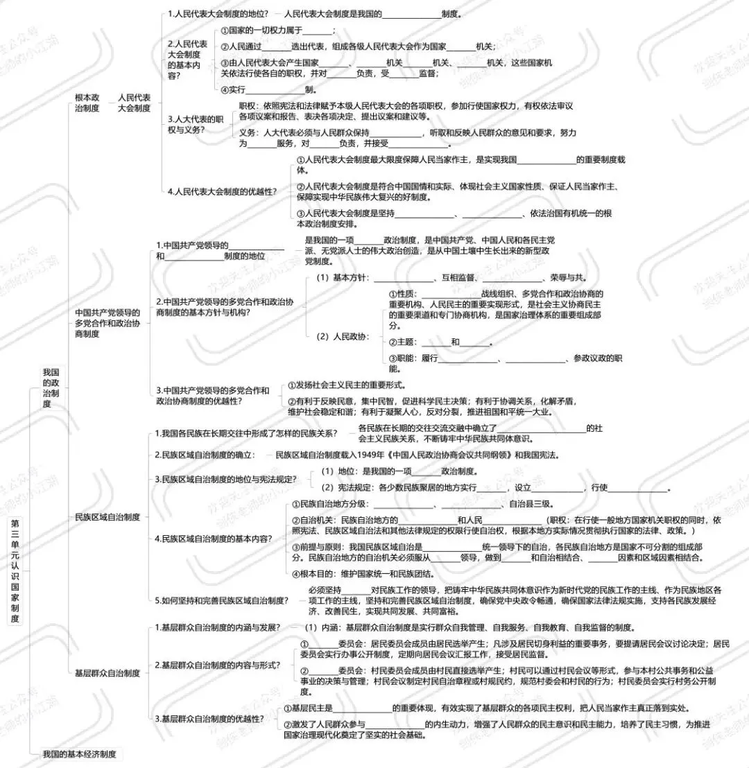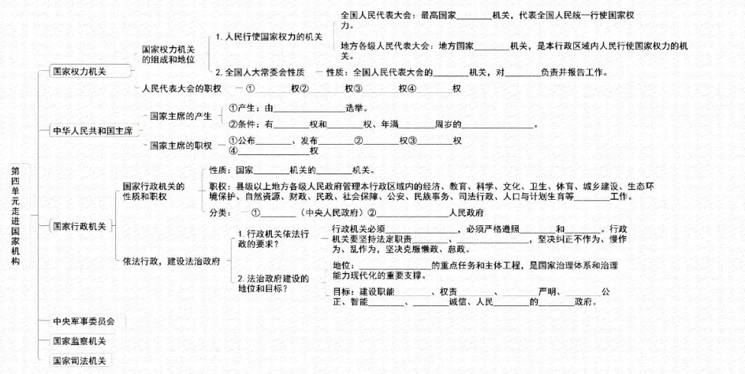 ①权力机关:充分发扬民主,扩大人民有序政治参与,加强人权立法保障,保证人民依法享有广泛权利和自由。