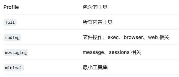{"tools": {"allow": ["browser", "web_search", "exec"],"deny": ["exec"]}}