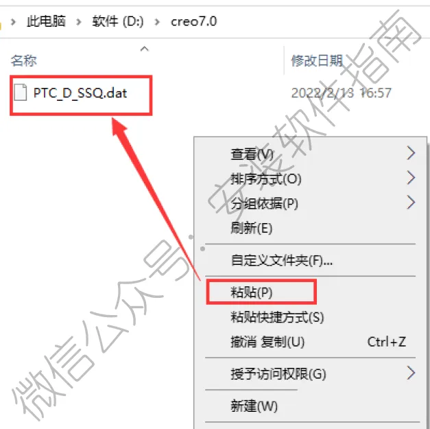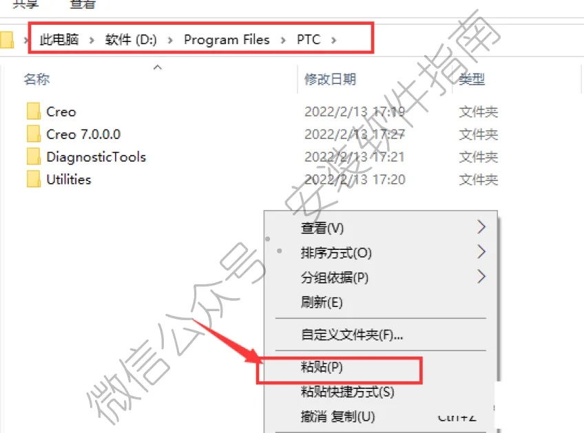 22.把复制的文件夹粘贴到【D:\Program Files\PTC】这个路径下