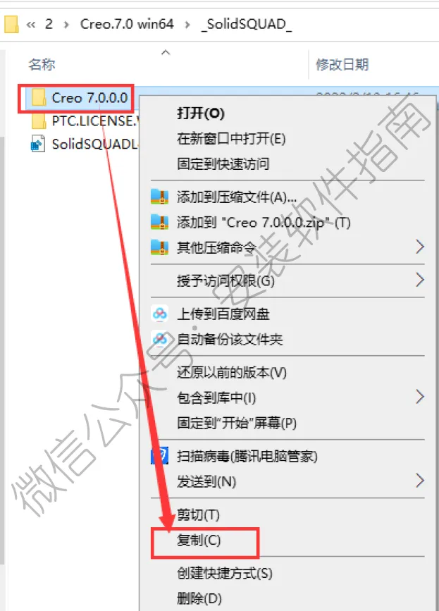 21.打开返回到解压出来的【_SolidSQUAD_】文件夹,复制【coeo 7.0.0.0】文件夹把它粘贴到【D:\Program Files\PTC】这个路径下.