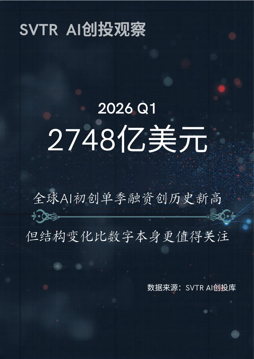2026年第一季度,全球AI初创融资以一种近乎失控的姿态创下历史纪录:807起融资事件,总金额2748亿美元。