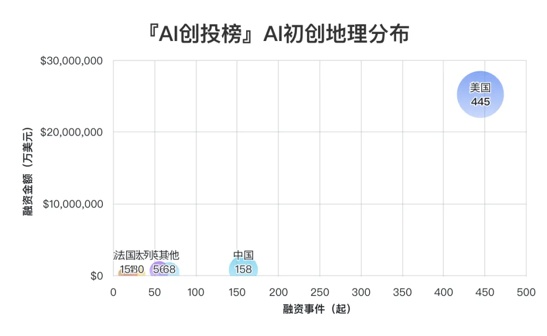 美国以445起融资、2519亿美元的绝对体量占据本季度91.7%的融资额。OpenAI、xAI、Anthropic、Waymo四家公司的融资总额就超过1700亿美元,几乎等于其余所有公司的总和。