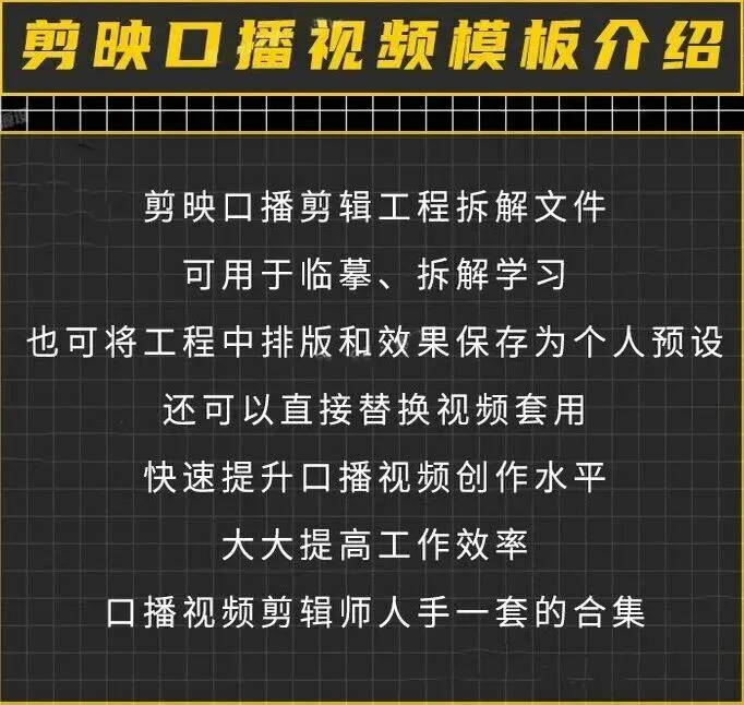 140套剪映热门口播精品模板,5分钟搞定一条爆款视频!【2178】公众号改推送机制啦!点左上角蓝字毛桃干货,设置星标★,好资源不错过!本期 | 140套热门剪映口播精品模板提供方式:百度网盘获取方式在文章底部今天给大家带来了140套热门剪映口播精品模板从节奏卡点到视觉呈现从情绪渲染到文字特效,全部搞定贴合当下热门风格,轻松找到节奏感各行各业类型的模板都有满足你的行业需求炒鸡棒的资源喜欢的话赶快下载吧!👇资源获取方式👇长按二维码或微信搜索关注公众号 毛桃干货(ID:mtgh326) 在后台回复 2178 👇首批会员限时特惠👇全站资源一键领取无需等待,极速下载※赠送价值千元会员礼包※免责声明:本文资源均为通过网络等公开合法渠道获取的资料,仅作为学习交流,其版权归出版社或者原作者所有,本公众号不对所涉及的版权问题负责。侵删,谢谢!