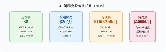 这里有一个很现实的问题,程序员们可能已经感受到了:同样是"用 AI 写代码",用免费 GPT-4o mini 的人和用 Claude Max 的人,体验根本不在一个维度上。