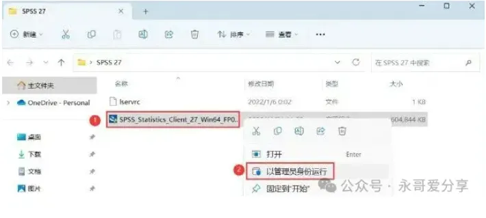 SPSS27版本保姆级安装教程(附安装包)- 找到【SPSS_Statistics…27】应用程序,右键选择【以管理员身份运行】。