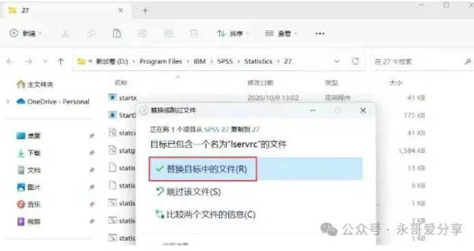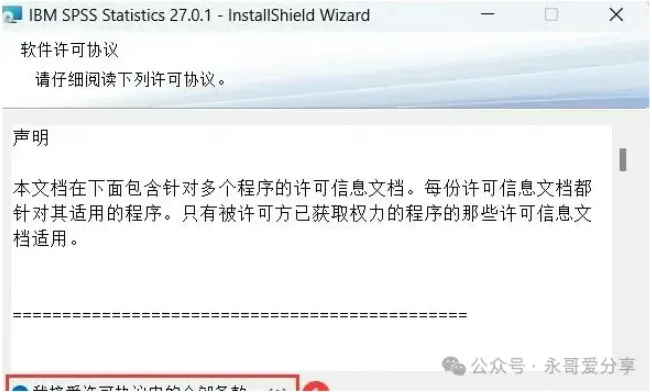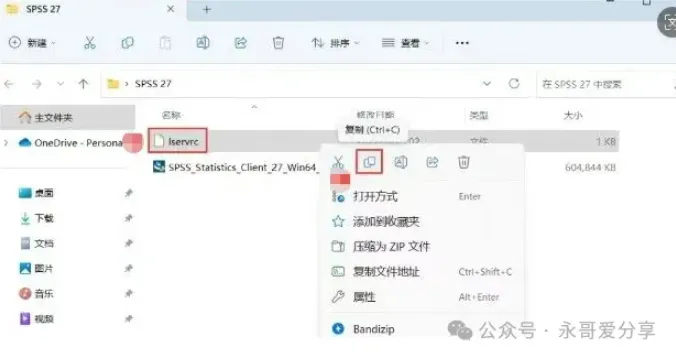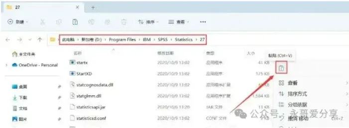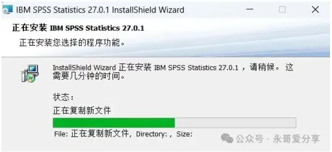 4. 软件默认安装在C盘,可自定义更改软件安装位置,这里小编选择安装在D盘;再点击【下一步】。8. 回到SPSS 27文件夹,找到【Iservrc】文件,再右键点击【复制按钮】。9. 回到桌面,右键桌面上的【SPSS 27软件图标】,点击【打开文件所在的位置】。12. 回到桌面,右键桌面上的【SPSS 27软件图标】,点击【打开】,软件打开成功,运行界面如下安装包下载链接:https://drive.uc.cn/s/4e15d429082c4?public=1免责声明:公众号提供材料不得用于任何商业用途,因不当使用本公众号网络共享软件而导致的任何意外、疏忽、合约毁坏、诽谤、版权或其他知识产权侵犯及其所造成的任何损失,本公众号概不负责,亦不承担任何法律责任。 如需长久体验,还请支持各公司正版授权软件。