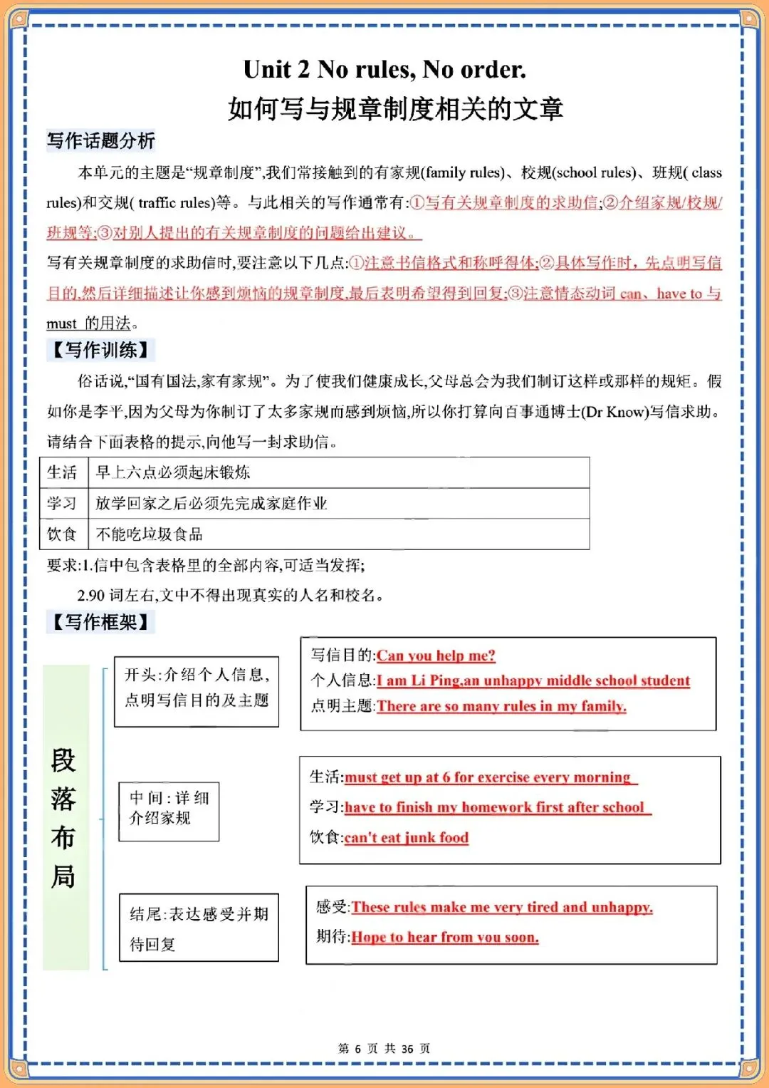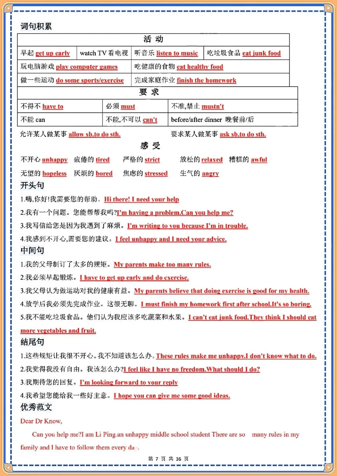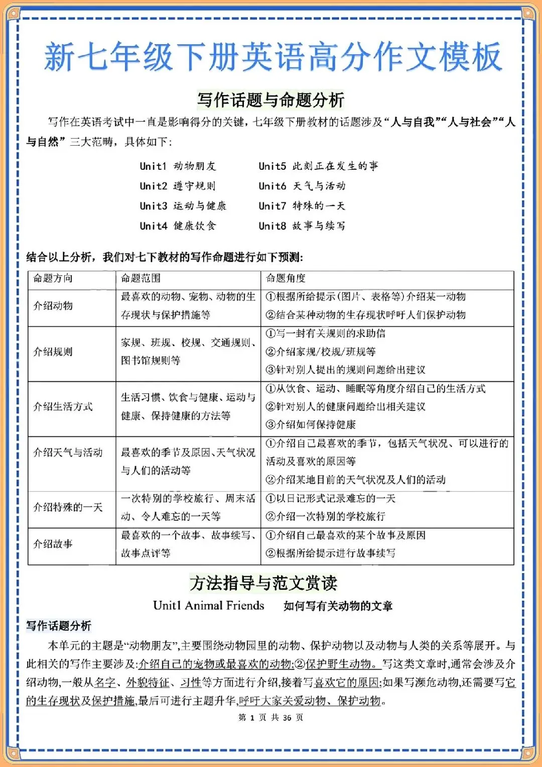 2026新七下人教版英语【高分作文模版总结】(电子版可打印)