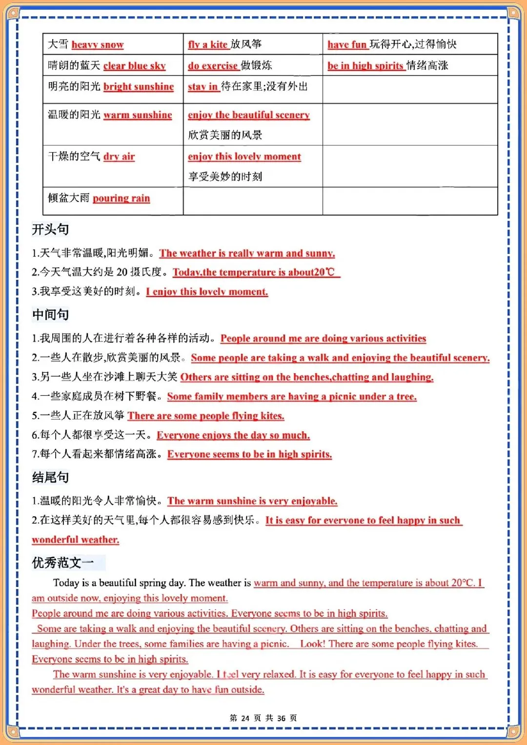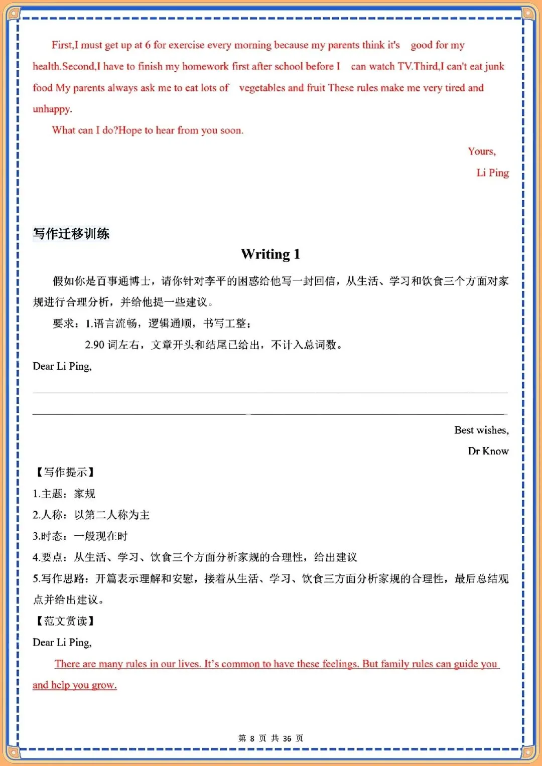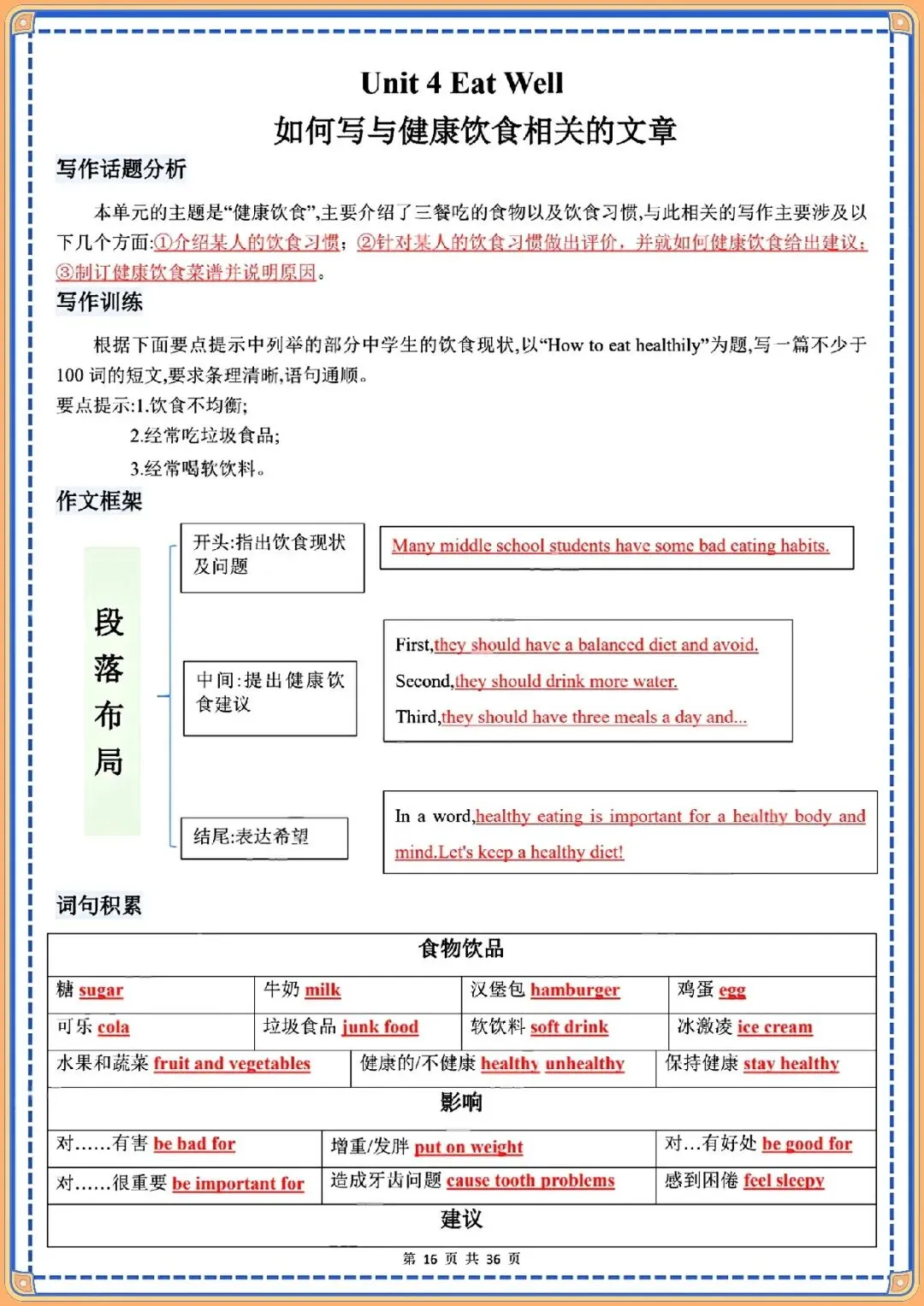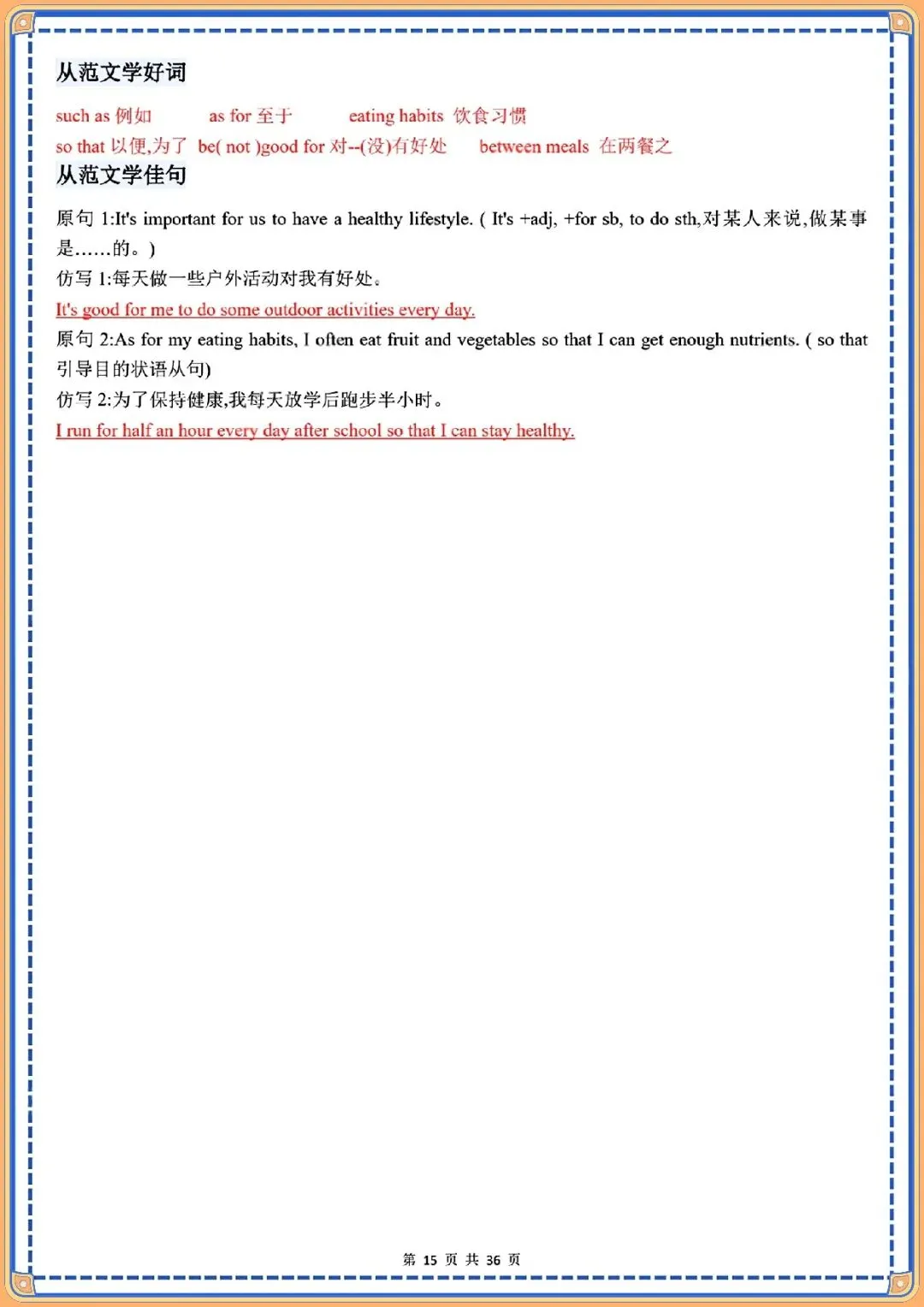 2026新七下人教版英语【高分作文模版总结】(电子版可打印)