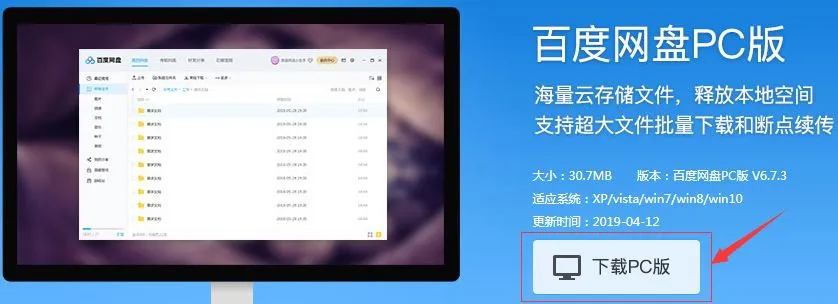 客户端下载地址:http://pan.baidu.com/download(将这个网址复制粘贴到电脑浏览器的网址栏),进入之后点击下载PC版。如下图: