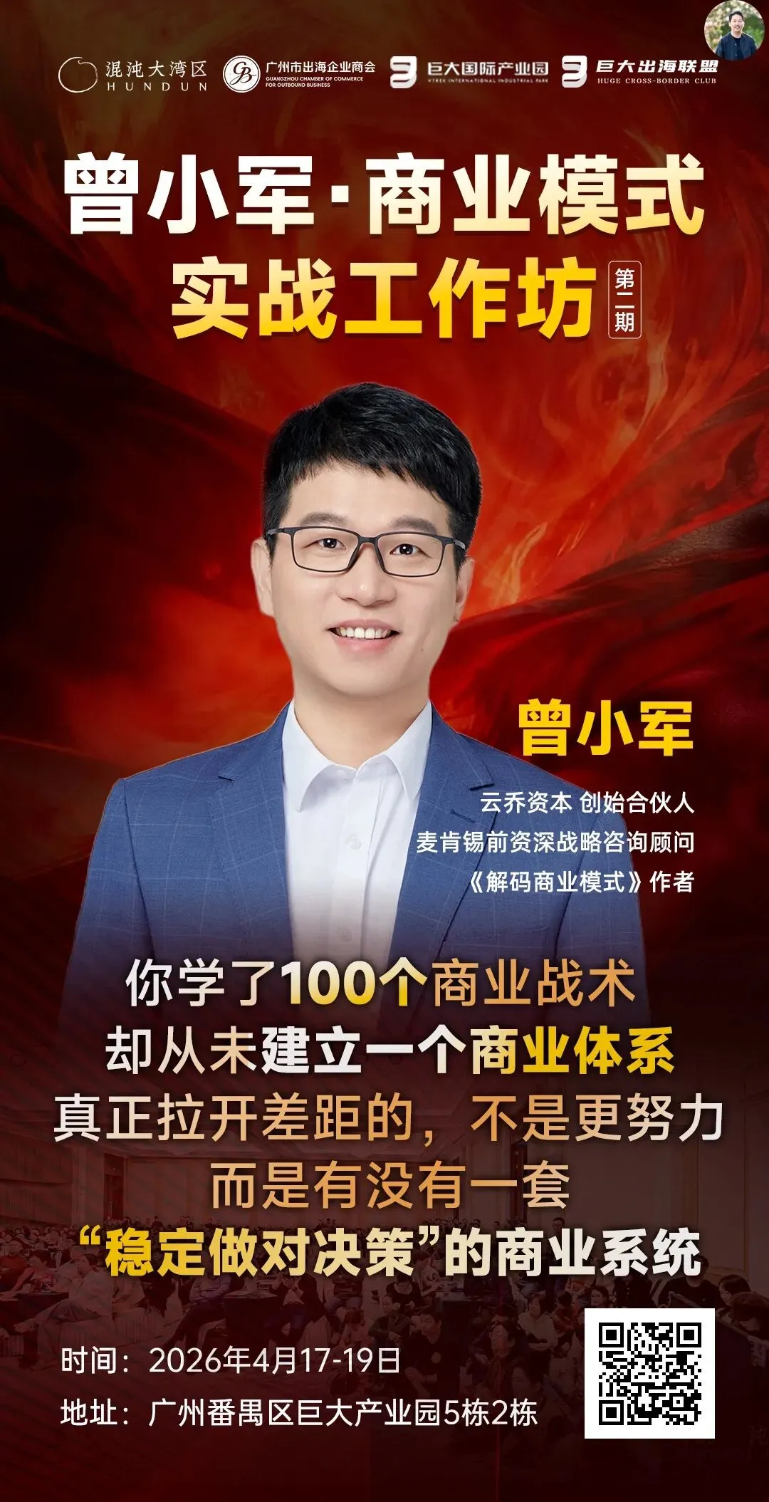 如果你也认同,在AI时代不能只靠学100个零散的商业战术,而是迫切需要建立一套“稳定做对决策”的商业系统。那么,我强烈推荐你参加《曾小军·商业模式实战工作坊(第二期)》。