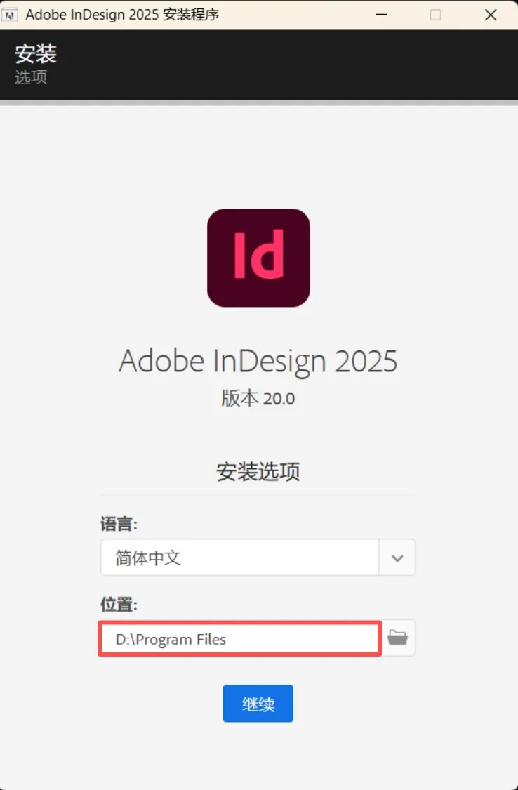 解压前请关闭杀毒软件,参考下面安装步骤即可! 注: InDesign安装步骤大体相同,大家参考下面安装步骤即可。 温馨提示:找大叔远程安装享不限速下载,快速安装,省时省力,自己安装要花五六个小时甚至更多,影响您宝贵的时间(大叔所有远程安装均提供90天独家售后服务) 1、鼠标右键解压到“InDesign 2025” ![]() 2、选中Setup,右键选择“以管理员身份运行” ![]() 3、选择软件安装路径,点击“继续” ![]() 4、软件正在安装,请耐心等待 安装的时长通常为1-2分钟,个别旧机器可能会延迟 ![]() 5、点击“关闭” ![]() 6、在开始菜单中,找到软件拖拽到桌面上 ![]() 7、双击图标,启动软件 ![]() 8、取消勾选,关闭