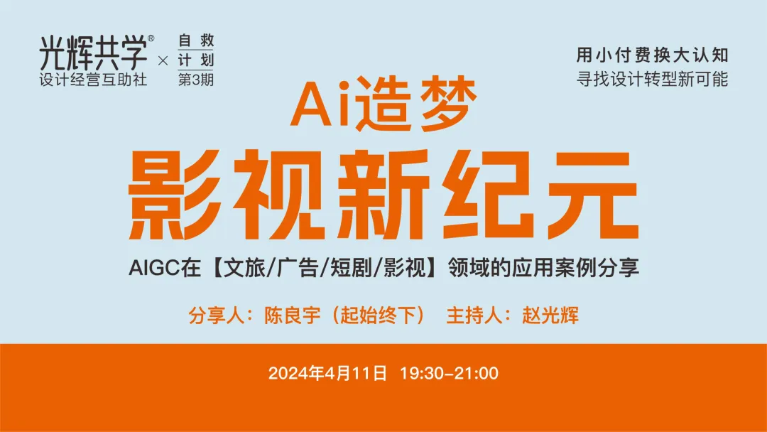 4月11日(周六)晚上,我们进行了自救计划的第3期——特别邀请了在AIGC影视商业应用领域有丰富实战经验的陈良宇老师,做了一场干货满满的分享。接近两个小时,信息量极大。