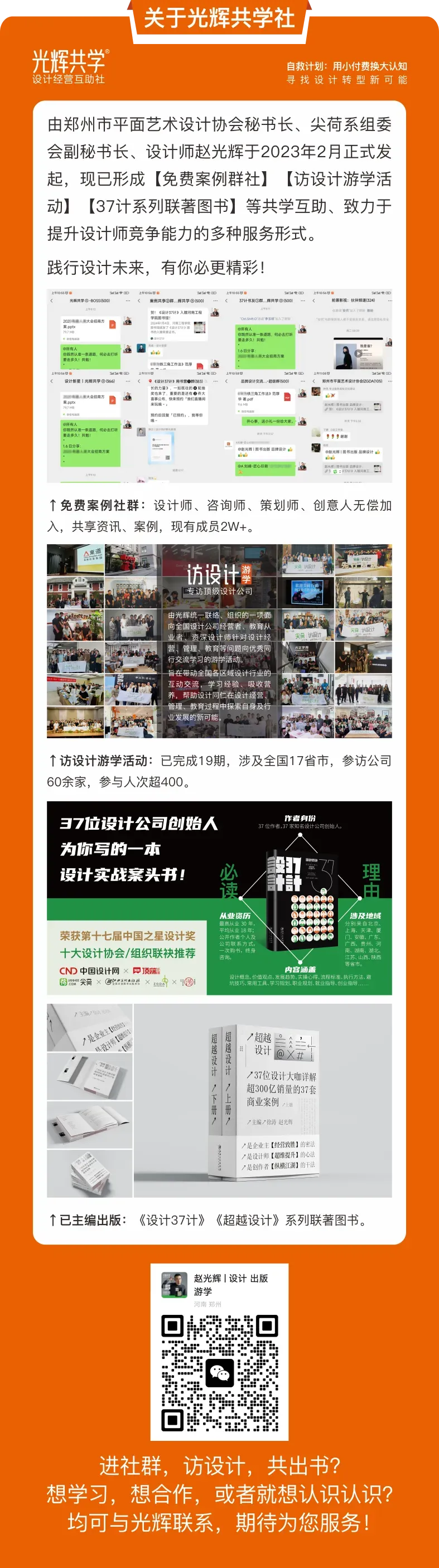 如果你想与更多优秀设计师一起成长:可以联系光辉,加入免费案例社群、参加游学活动、联合出版图书……