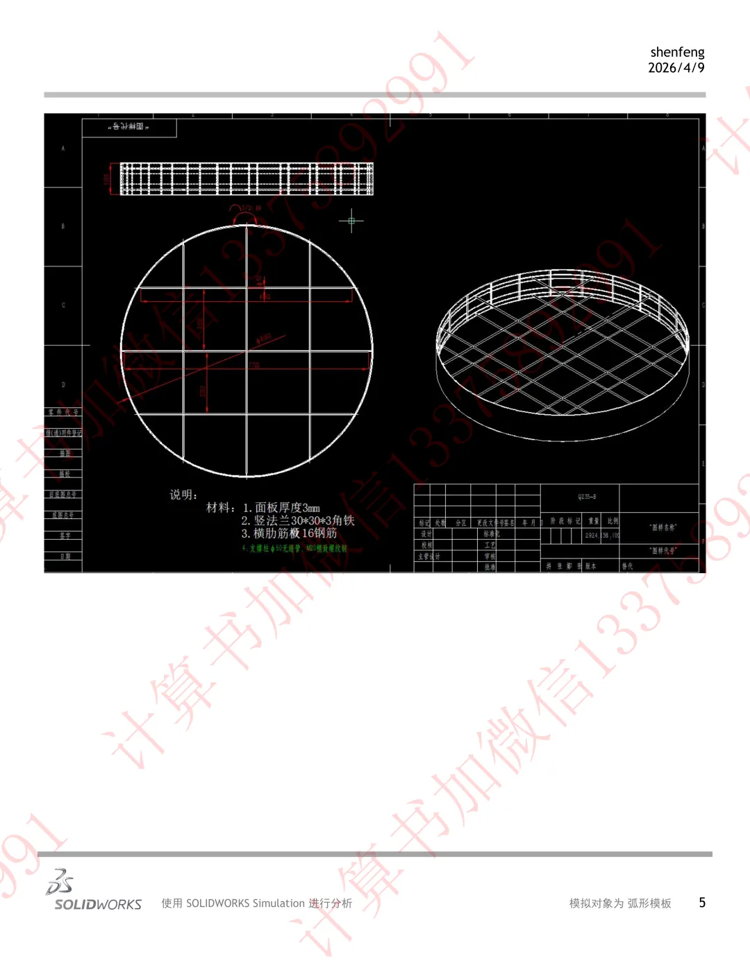 根据图纸及有限元模型: