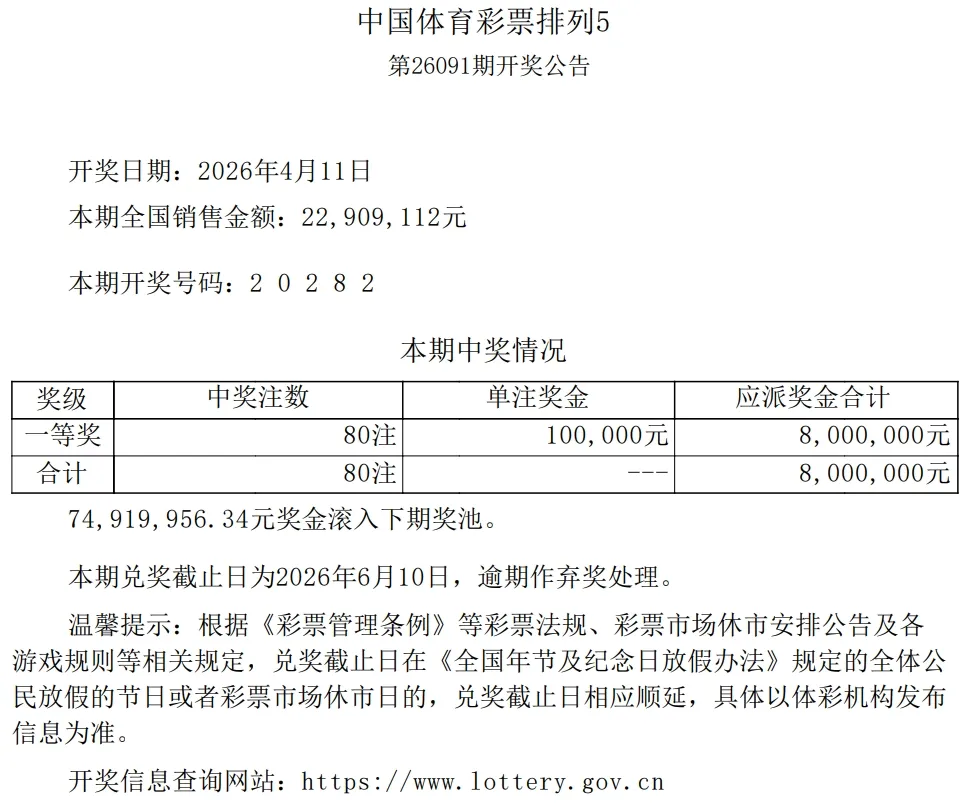 排列5(26091)开奖号码: