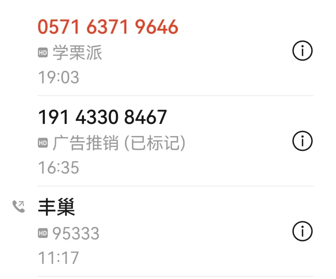 网购,短信,电话风波之后,总该消停了吧,可没想到,晚上散步时,又收到一个来电显示“学栗派”的电话,我不明就里,直接挂掉拉黑了,这一个个接二连三的短信电话轰炸,实在是不胜其烦。