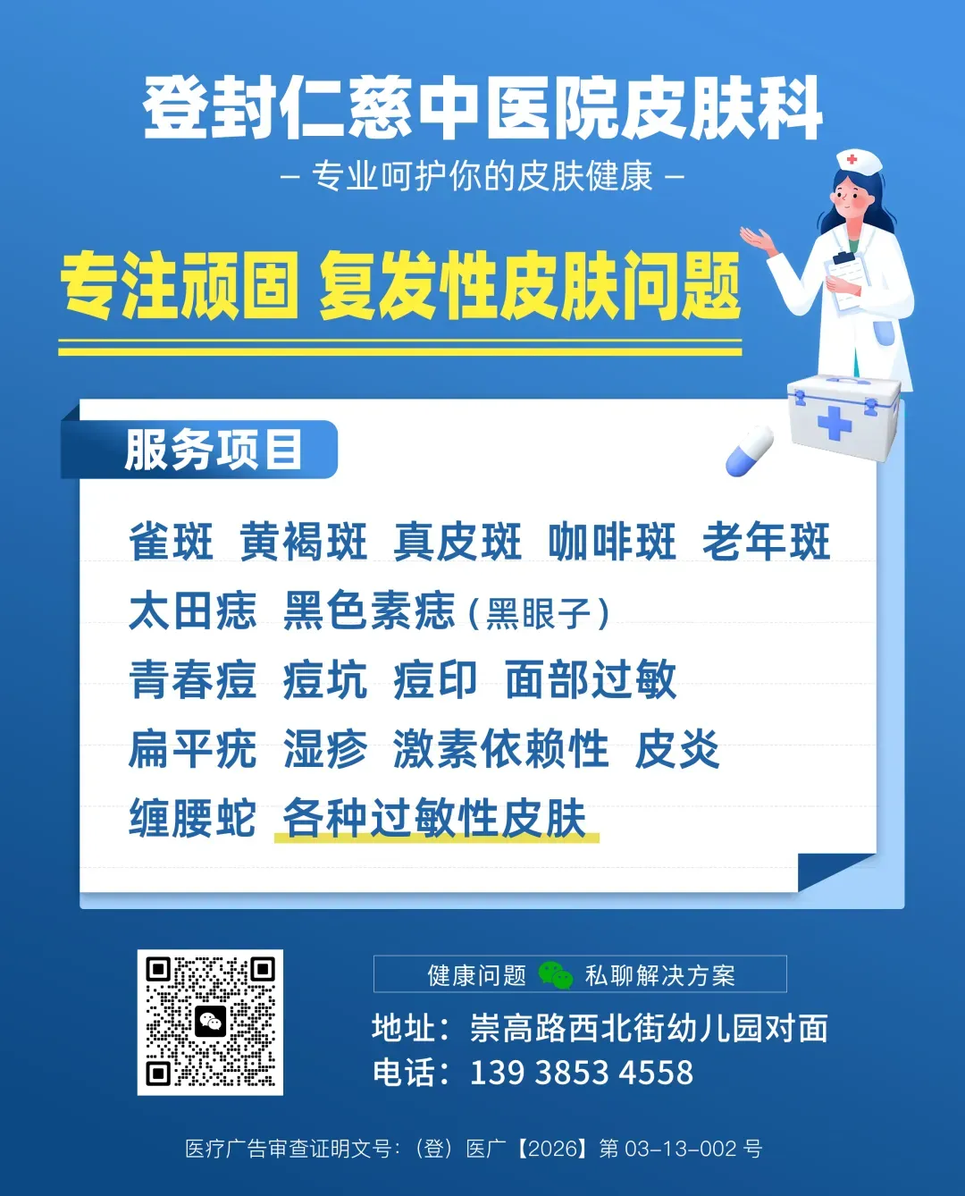 登封仁慈中医院皮肤科,招募银屑病朋友免费参与健康随访、检测 ,提供科学护理与康复咨询服务。