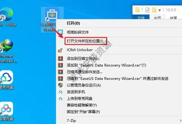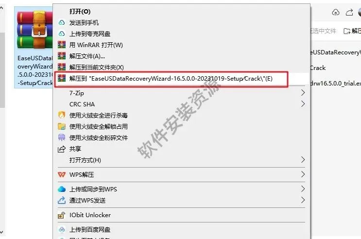 1.选中下载的EaseUS Data Recovery Wizard v16.5.0.rar软件安装包,鼠标右击选择【解压到EaseUS Data Recovery Wizard v16.5.0】