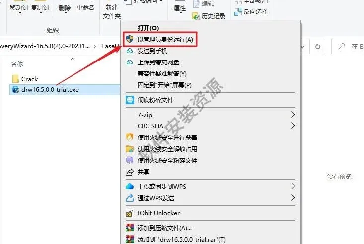 2.双击打开解压好的文件夹,右键选择“drw16.5.0.0_trial.exe”,以管理员身份运行