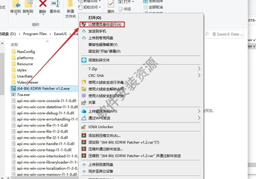 12.选中战体过来的“(64-Bit) EDRW Patcher v1.2.exe”,右键“以管理员身份运行”