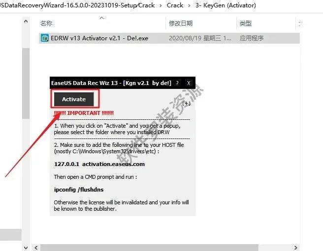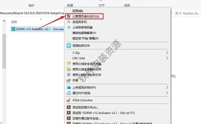 16.选中“EDRW v13 Activator v2.1 - De!.exe”,以管理员身份运行