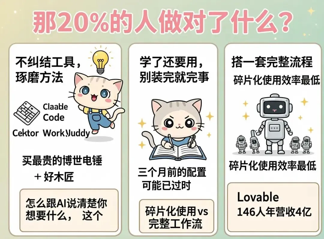 做完一个项目花10分钟复盘就行。AI哪部分做得好哪部分差,提示词哪里能优化,有没有更好的工具。答案记在Notion或者飞书文档里,下次做类似项目直接翻出来用。