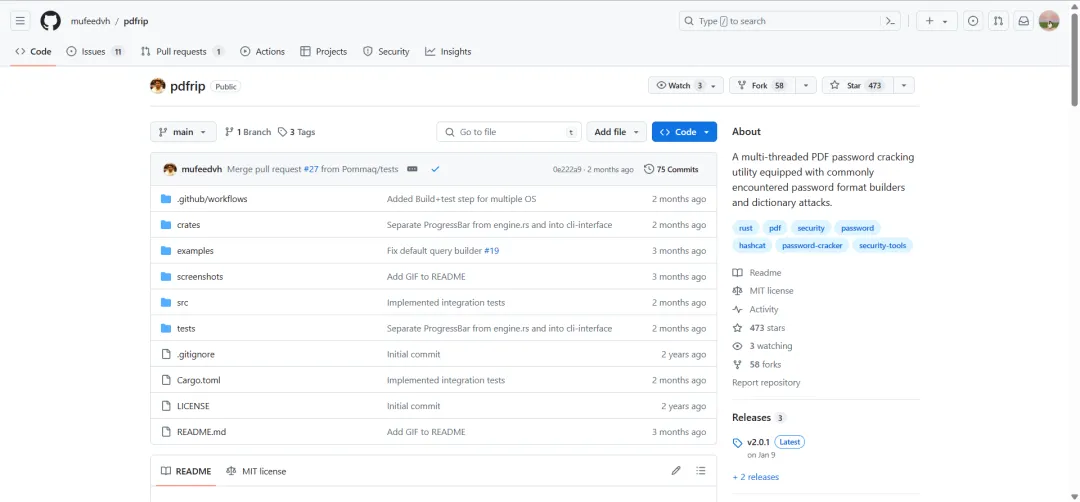 ▎网站地址:https://github.com/mufeedvh/pdfrip/releases/tag/v2.0.1