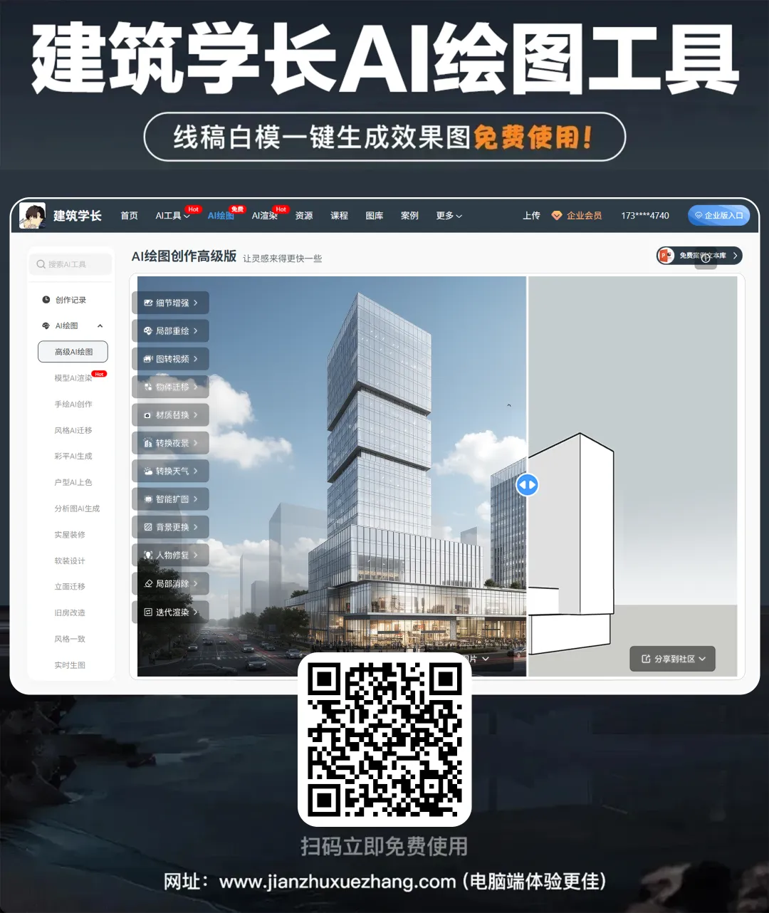 附建筑学长出品在线AI绘图网站 ▼