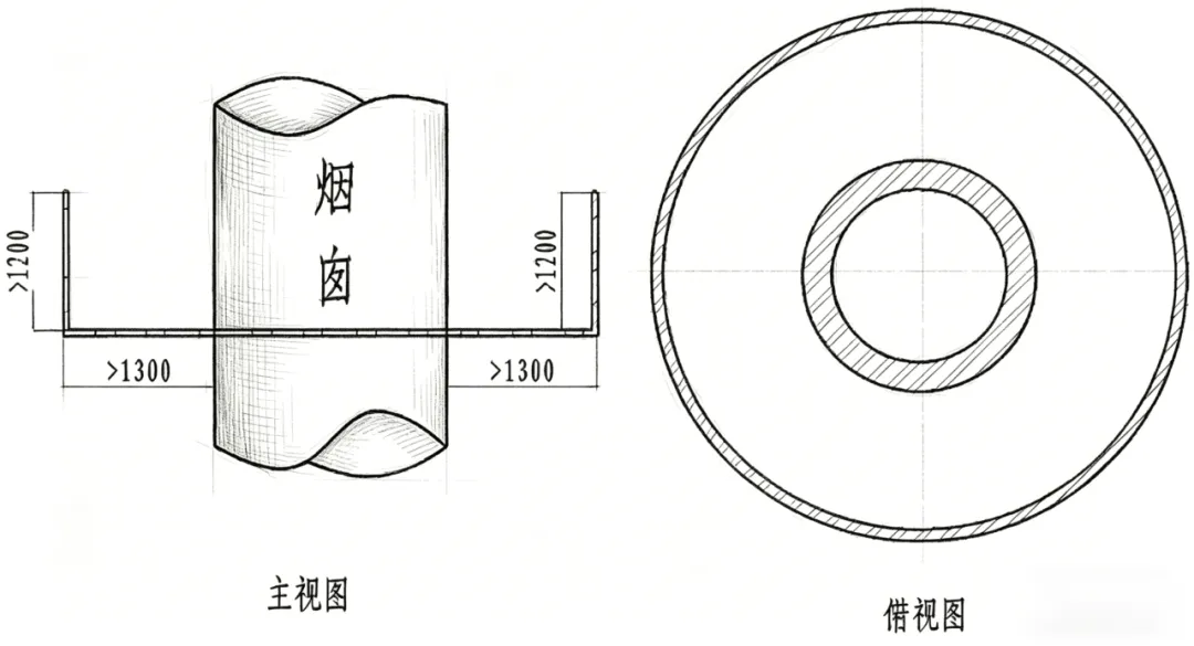 • 制成后涂防锈漆和面漆,平台外边缘到烟囱外壁距离≥1200mm。