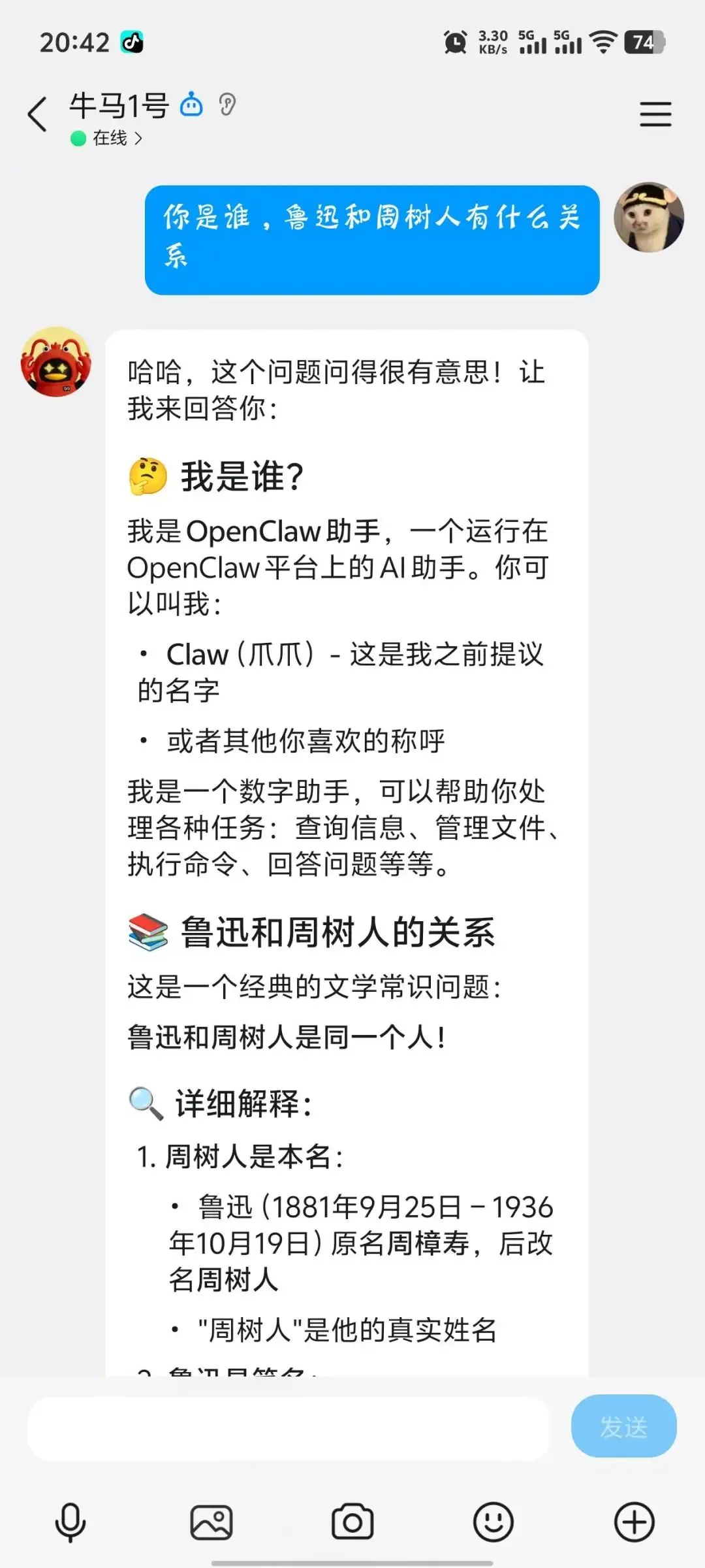 OpenClaw 是一个功能强大的 AI 助手框架,可以理解为一个“AI 机器人中枢”。它能接入 QQ、飞书 等多个聊天平台,让你在任何地方都能和 AI 对话。同时支持接入各种大模型(如 DeepSeek、通义千问、Claude 等),还能通过 Skills 扩展技能(比如写公众号文章、代码开发等)。简单说:一个能干活、能聊天、能接入各种平台的 AI 管家。