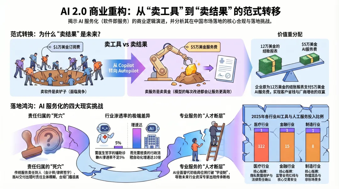 AI服务化的真正机会,从来不在PPT上的完美逻辑里,而在对行业细节的深度洞察中——哪些工作可交由AI完成,哪些必须由人类躬身担责,监管的红线在哪里,客户的信任如何建立。