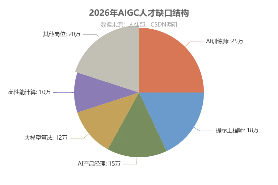 AIGC人才缺口结构(2026年,单位:万人)