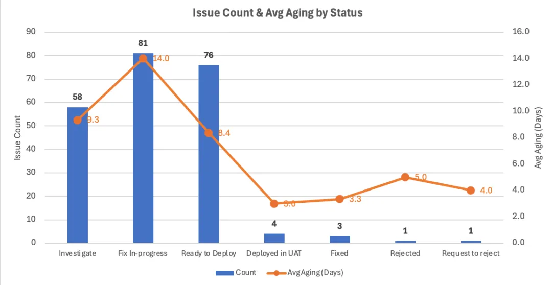 场景 2:按状态统计缺陷分布,顺便看 aging