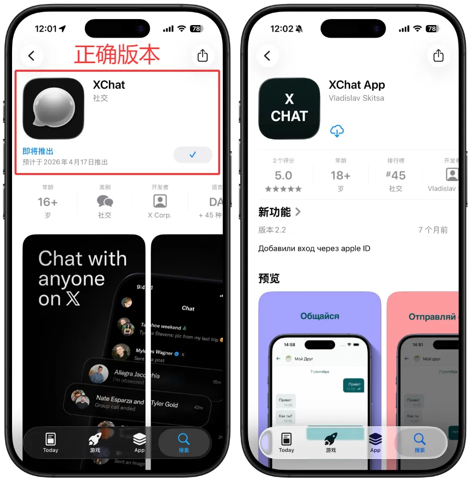 马斯克版“微信”来了,iPhone下载需谨慎!说干就干,马斯克版“微信”真的要来了!社交媒体巨头X公司宣布,其全新独立消息应用XChat将于2026年4月17日正式登陆iPhone和iPad平台。根据应用描述,用户可以在XChat中与X平台上的任何人进行私密交流,无需担心广告干扰或数据追踪。X公司强调,XChat将彻底摒弃广告和用户行为追踪功能,确保用户的聊天体验不受任何商业因素影响。在隐私保护方面,XChat采用了端到端加密技术,确保用户的聊天内容在传输和存储过程中始终处于加密状态,只有发送方和接收方能够解密查看。除了基本的私聊功能外,XChat还支持群聊、视频通话、消息阅后即焚等多种实用功能。用户可以根据需要创建或加入群聊,与多人同时进行交流;通过视频通话功能,实现面对面的远程沟通;而阅后即焚功能则让敏感信息在查看后自动消失,不留痕迹。此前马斯克曾在采访中表示,中国用户的生活高度依赖微信,该应用完美融合了信息交换与资金流转,但在中国之外尚无同类产品。因此,他将X的发展方向定义为“微信升级版(WeChat++)”,旨在填补这一全球市场空白。尽管XChat已在中国大陆地区的App Store上架,可供iPhone用户下载使用。但这里小编要提醒大家的是,下载时务必提高警惕,仔细甄别,谨防误下盗版软件。目前,当用户在App Store中搜索“XChat”时,搜索结果里排在首位的应用实际上是并非是我们要下载的XChat,而真正XChat需要用户向下翻找才能看到。由于盗版软件可能存在恶意代码、窃取用户账号信息等安全风险,因此大家一定要擦亮双眼,仔细比对应用图标、开发者名称等关键信息,确保下载到的是官方正版应用。iPhone17已经上市,256GB起步,6.3寸更大屏幕,120HZ高刷等良心升级,今年肯定会大卖!如果您家里有闲置手机趁现在高价出掉,很多人把闲置的手机一直放着,最后只能换不绣钢脸盆!(估价满意后再加回收专员:gfzjxm)