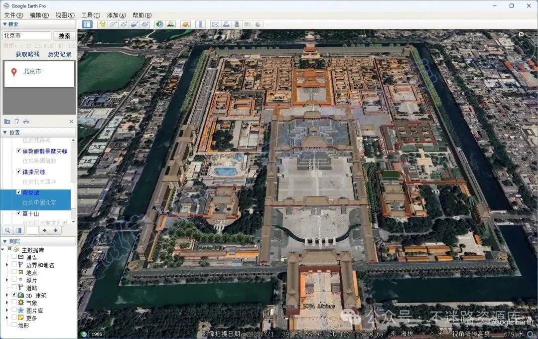 3、在谷歌地球可以看到高清影像,还能在部分的地区看到三维模型